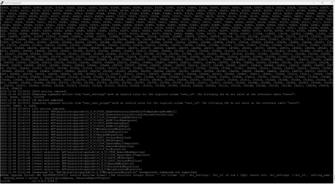 I’m upgrading a journal from ojs 3.3 to ojs 3.4.0.14 - unfortunately I receive an error where I can’t figure out how to continue.
