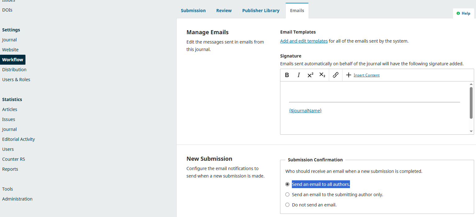 with OJS 3.4.0.8. In emails setting page I’ve checked the “Send an email to all authors” option for new submissions.