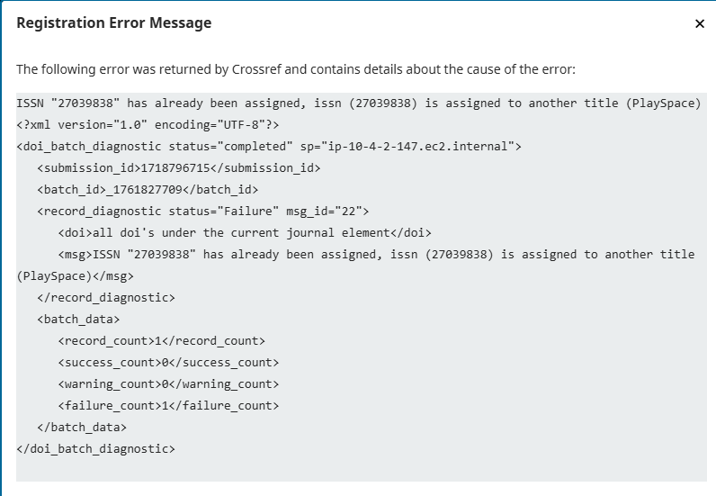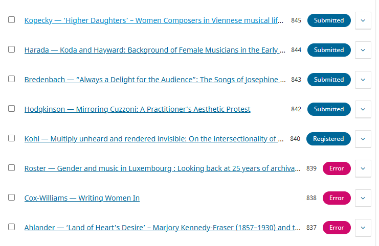 As you see, most articles have the status “Submitted”. They still are not found. Can anyone give me any guidance? Earlier issues of this journal have working DOIs, but I can’t remember whether I did that manually or tried the automated process.