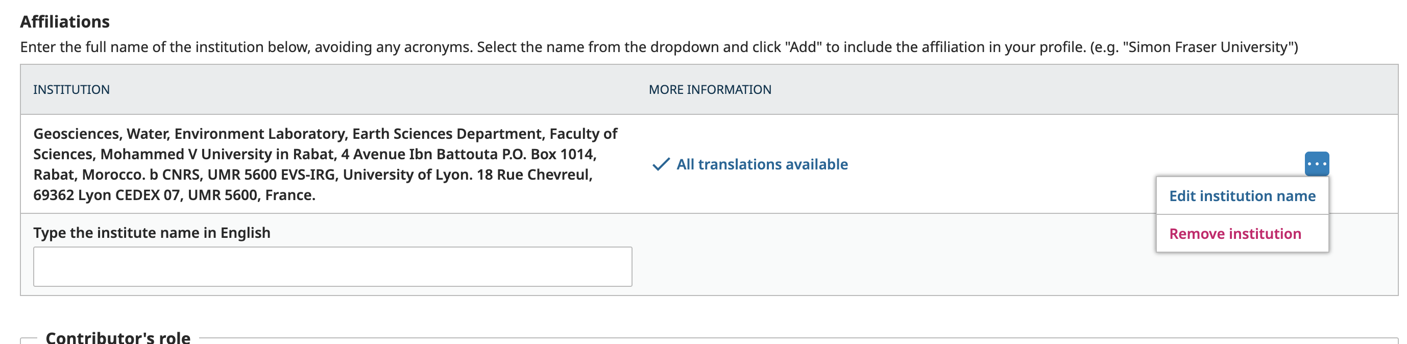 It’s there. Just type the next affiliation into the form field under “Type the institute name in English”.