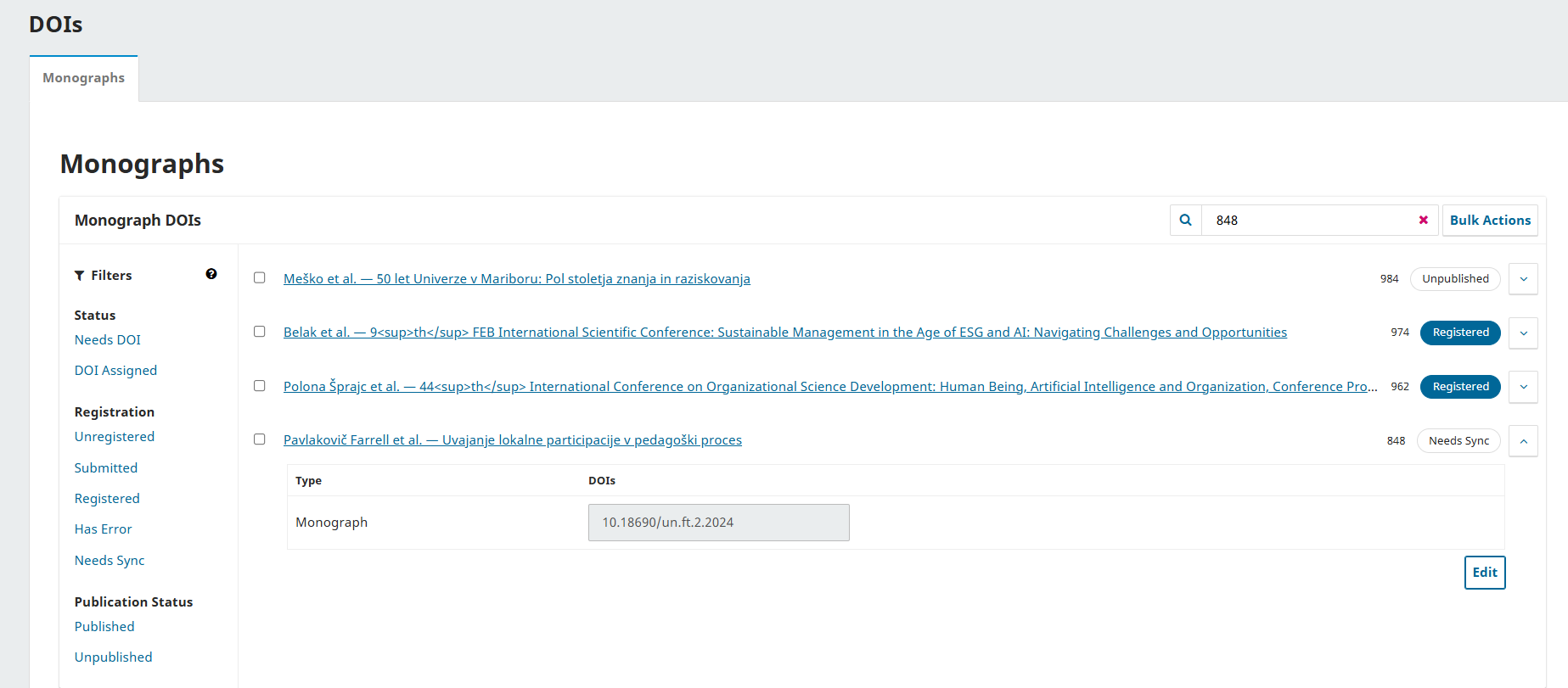 Hello. I would kindly ask for your help if you have experience in assigning DOI numbers in OMP for new editions of monographs.