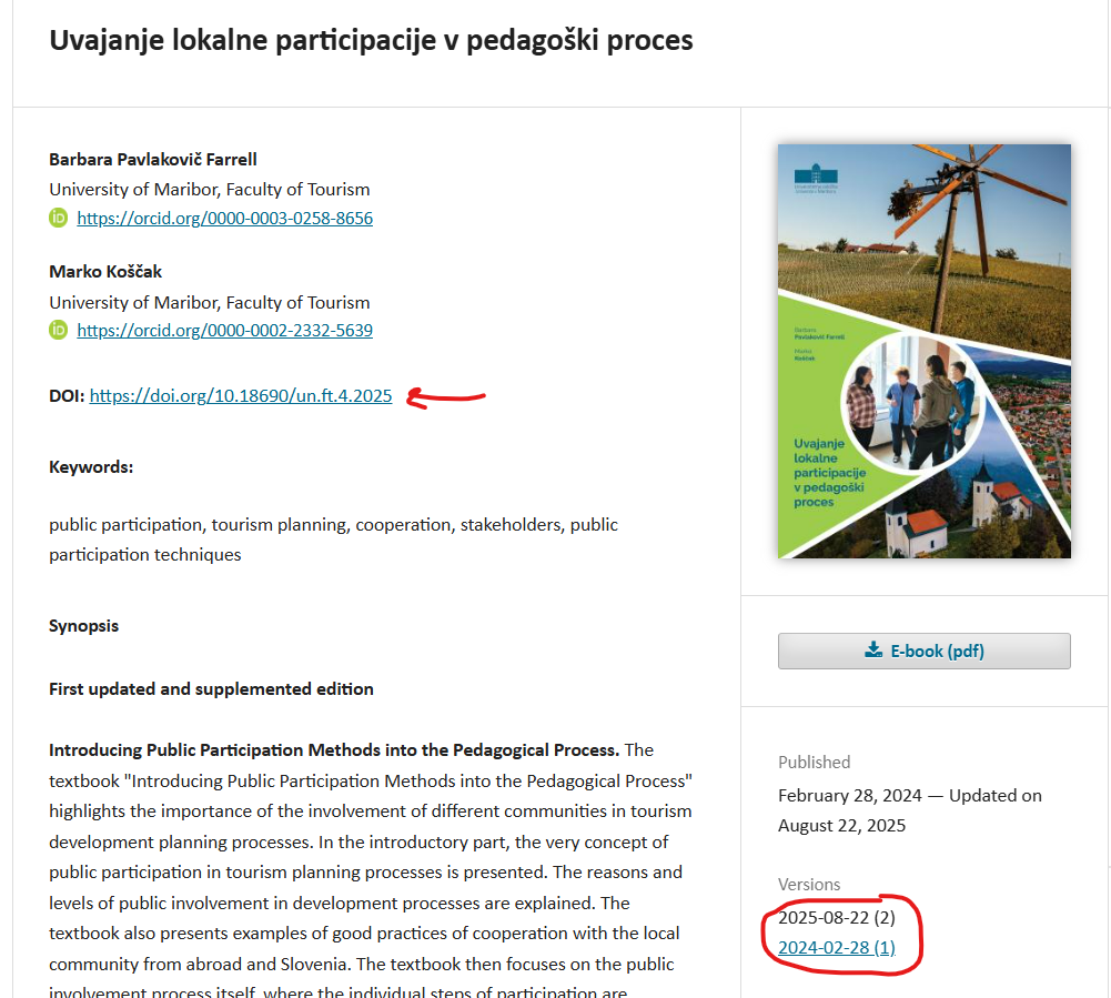 So when I change the DOI number to the new one for the 2nd edition, the DOI number displayed for the 1st edition also changes.