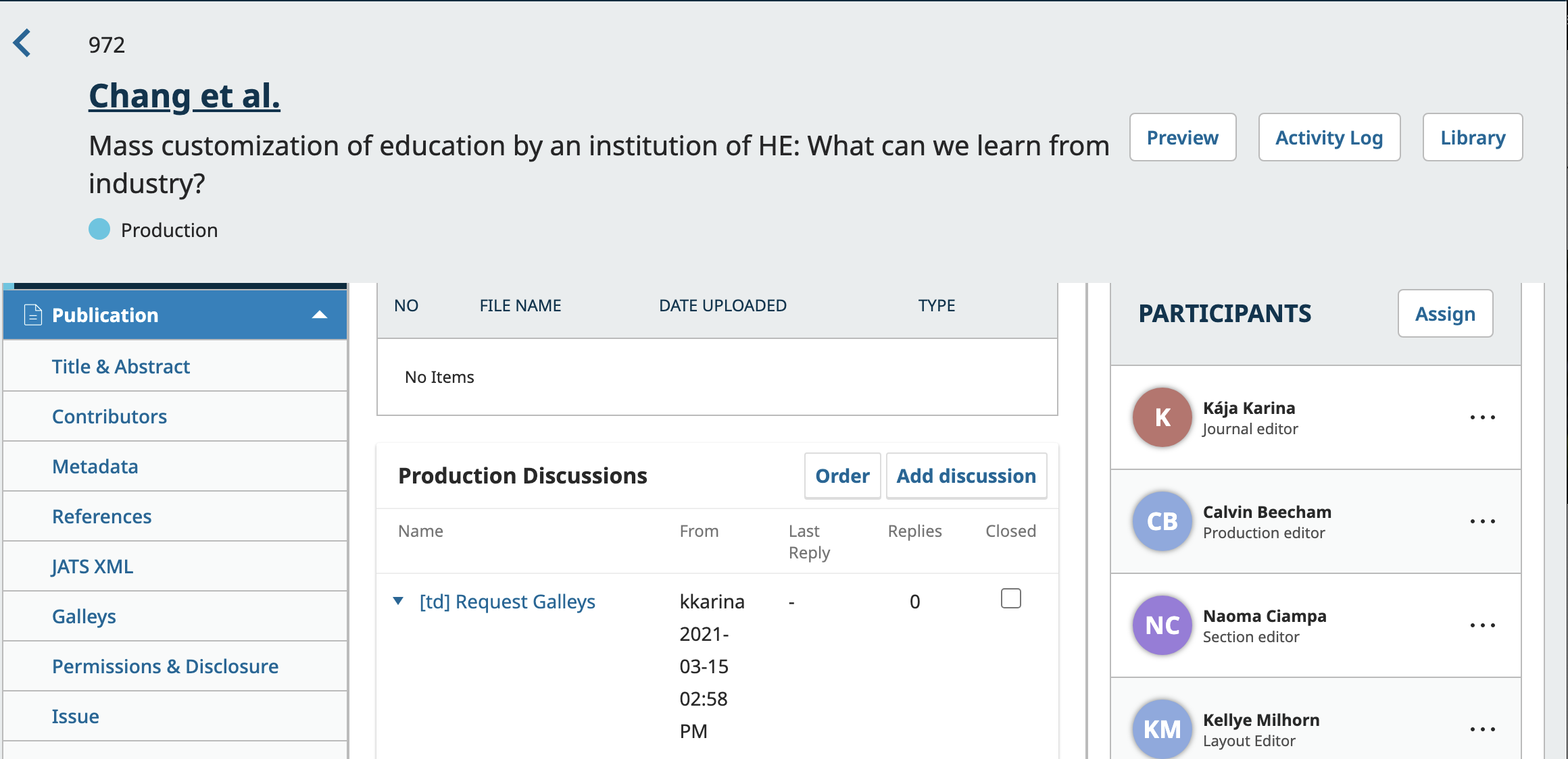 Information – such as status nuances, special handling instructions, internal reminders, etc– ends up being tracked outside OJS via an ad-hoc solution (e.g., spreadsheets, email threads, or personal notes). This creates fragmentation, increases the risk of missed details, and slows down editorial coordination.