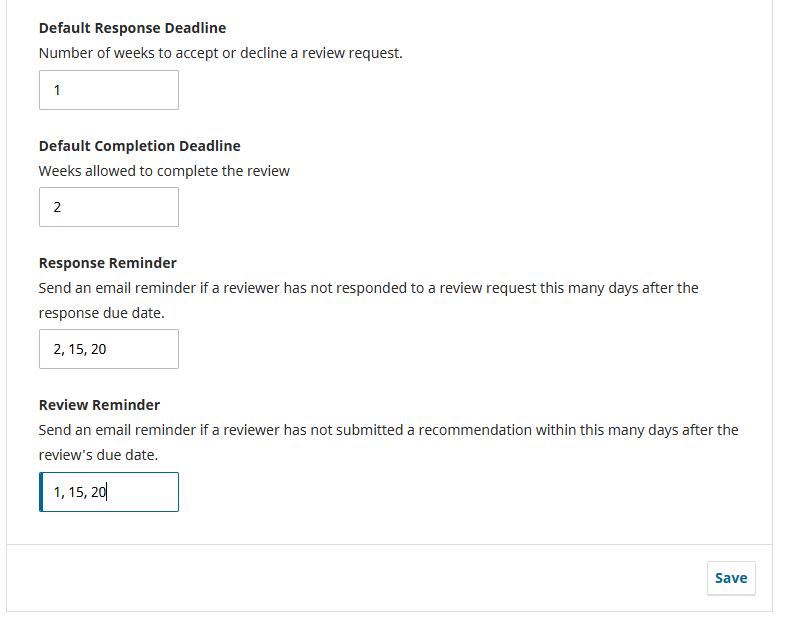 Our editors have requested that review reminders be sent multiple times to reviewers who have not yet completed their reviews. We would like to send up to three automatic reminders to encourage reviewers to complete their assigned review tasks.