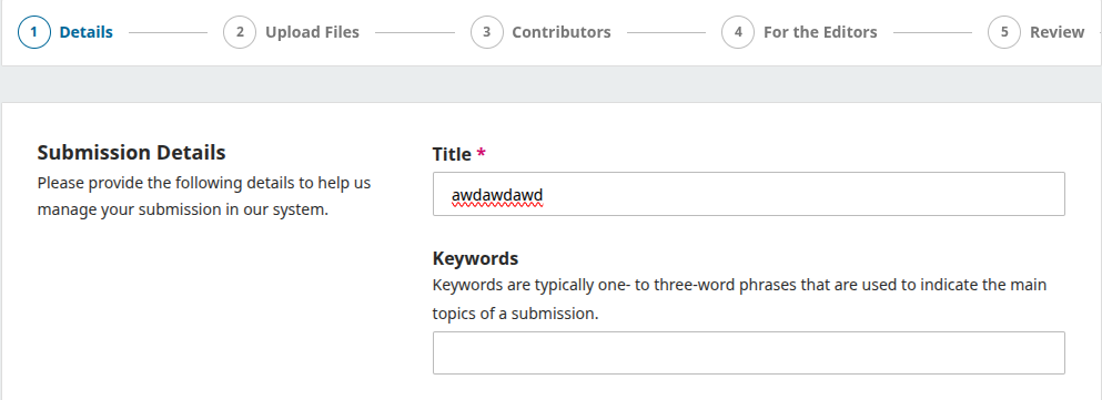 “Keywords are typically four- to six-word phrases that are used to indicate the main topics of a submission.”