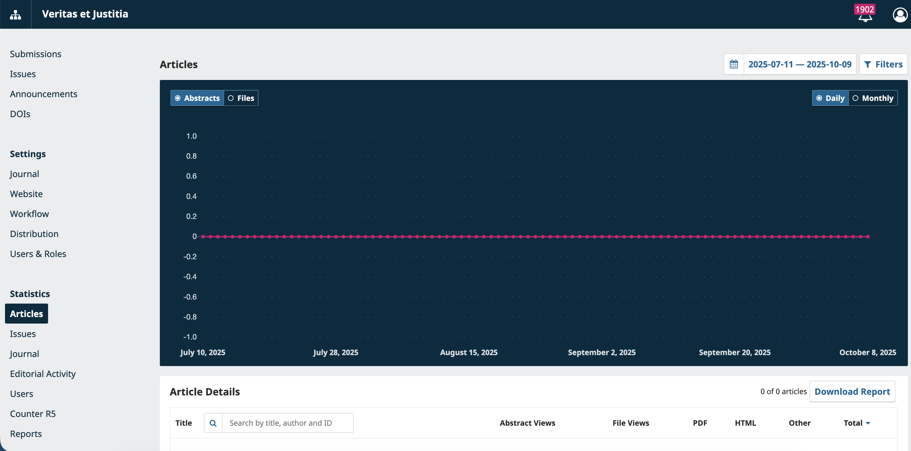 I have OJS 3.4.0.9, the article statistics showing 0 abstract views and 0 pdf downloads. Previously in OJS 3.3 it works, but after update it’s not working. Is there any script that compatible for this version OJS?