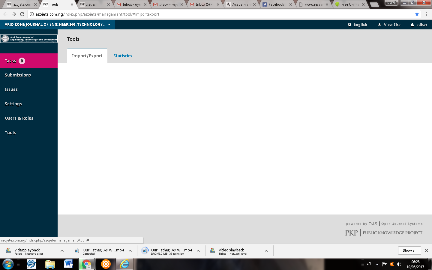 Please the Tools under import and export is empty.