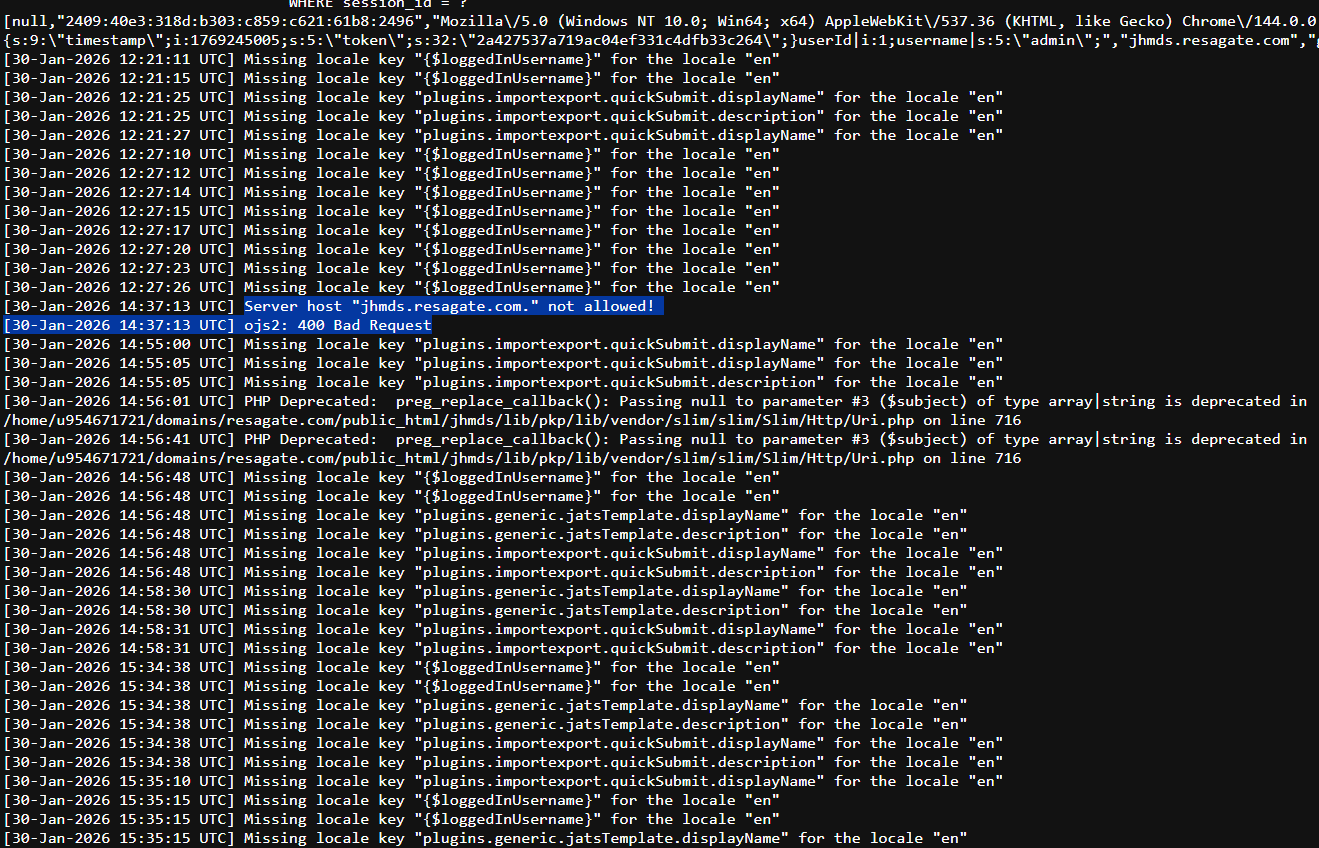 Is there any possibility of error due to the hosting of this journal under the subfolder in Resagate.com due to using it with subdomain (jhmds.resagate.com) ?