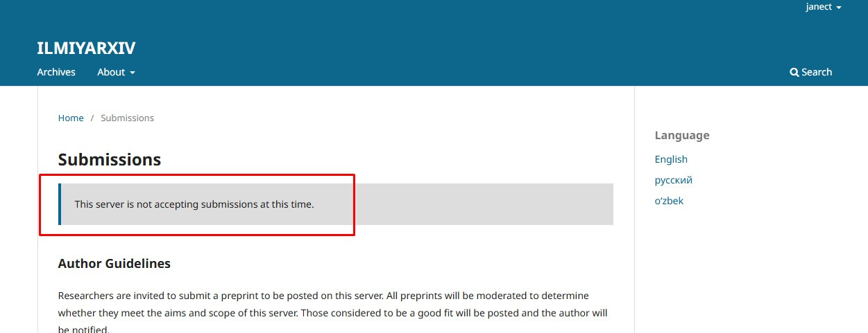 I have an issue with OPS submission. Even though the submission is allowed, the author cannot submit with the message “server not accepting submission…” I’ve attached screenshots
