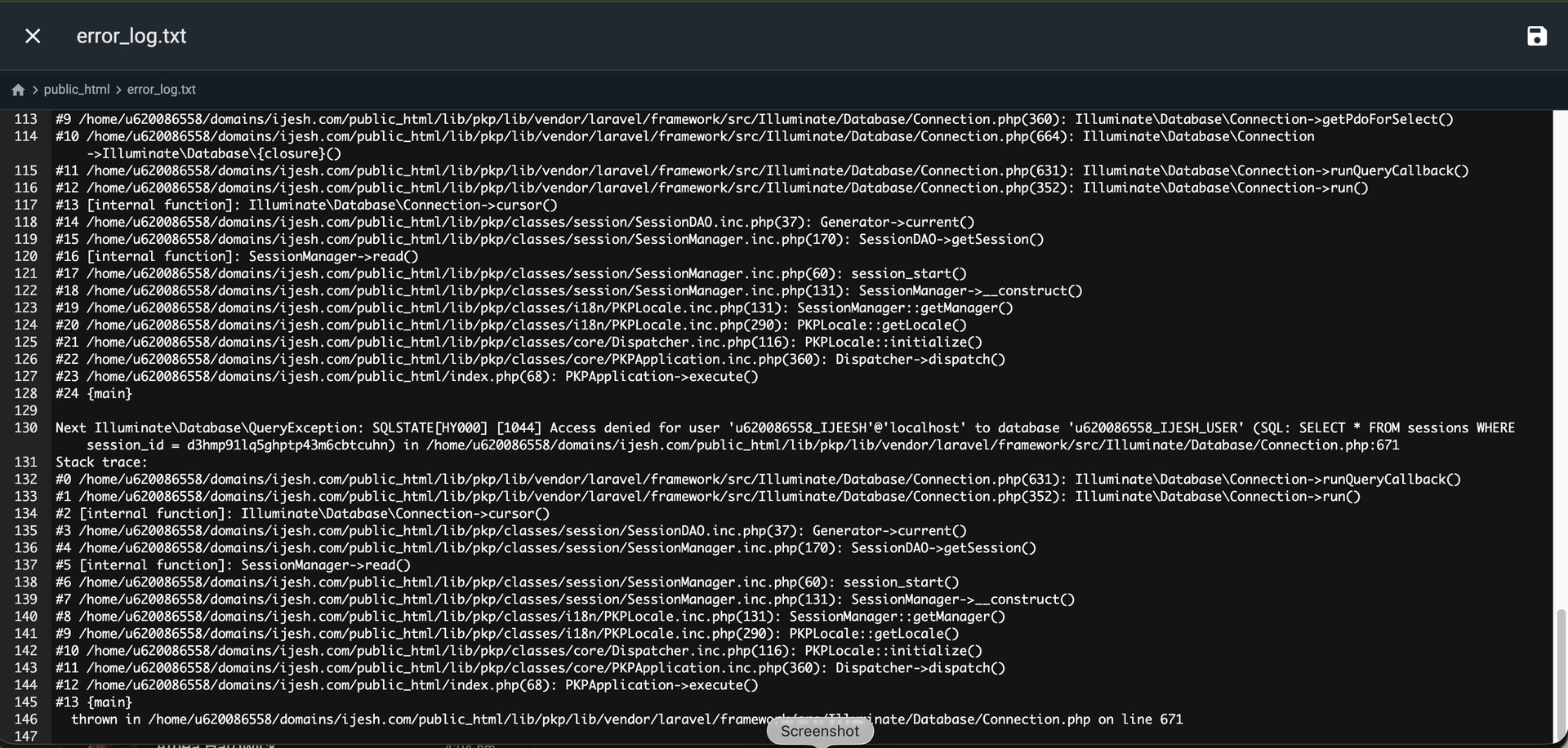 My website was working fine till yesterday, but today i am seeing error. I am attaching screenshot of Error Log. Kindly help
